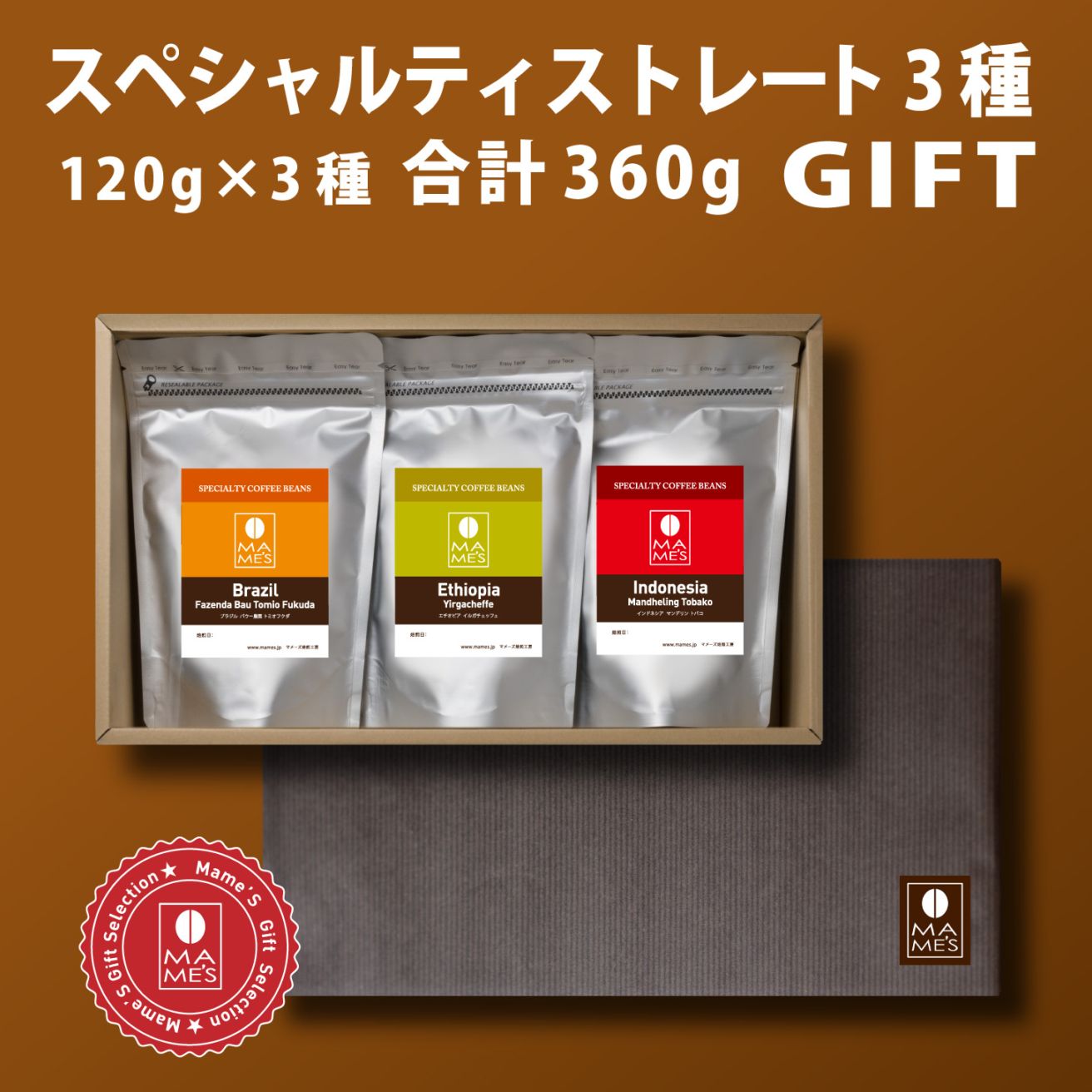 コーヒー豆 スペシャルティストレート ギフト(120g×3)